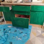 The cupboards and tiles are all painted with Frenchic AL Fresco –